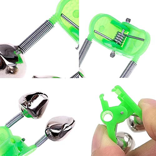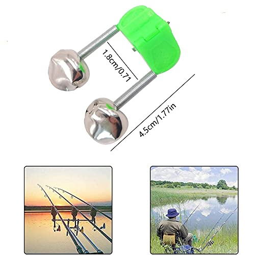【Eenvoudig te gebruiken】 De groene clip heeft twee inkepingen om hem op je hengel te houden. Bevestig de bel eenvoudig aan uw hengel en hij zal rinkelen wanneer de vis toeslaat. Let op de wind, deze zijn gevoelig, dus ze schudden met de wind mee, maar je ziet makkelijk het verschil tussen wind en vissen knabbelen