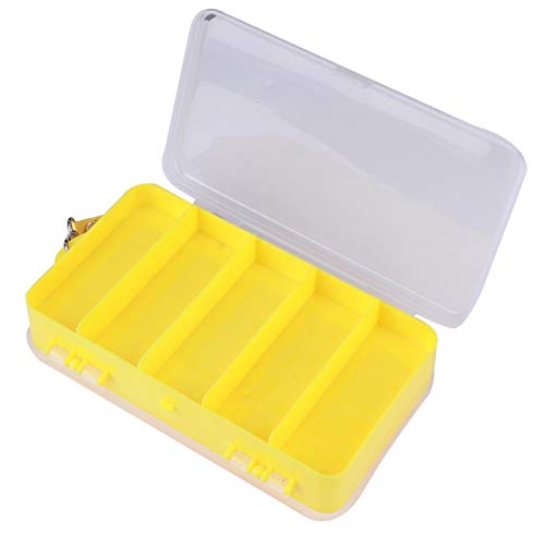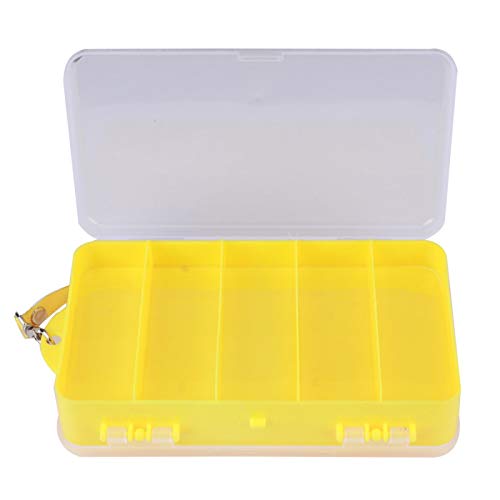 2. Een gele, dubbelzijdige, multifunctionele gereedschapskist die wordt gevuld met plastic kunstaas, aas, haken, terminals, moeren, bouten, schroeven, kralen, klossen of zo ongeveer alles kleins.