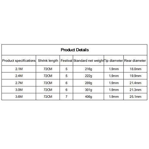 Grootte van het product: 2,1 m, 2,4 m, 2,7 m, 3,0 m, 3,6 m