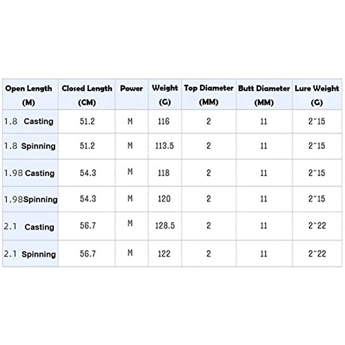 Gewicht (gieten): 11 6G / 118G / ( Spinnen): 113.5g / 120 g / 122g
