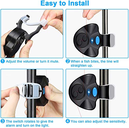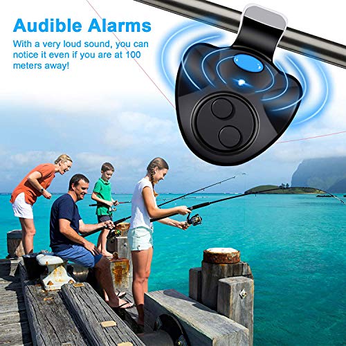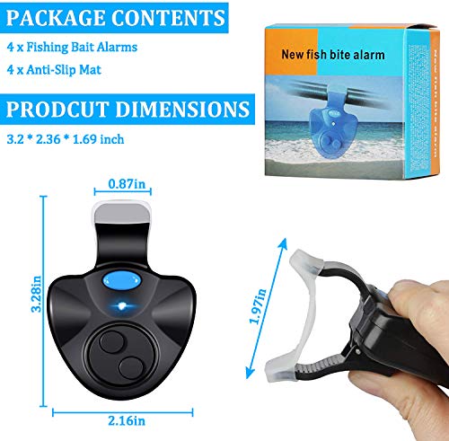 Specification: AlfaView 4 Stuks Visbijtverklikkers voor Gevoelige Vissen, Bijtindicator Elektronisch met Led-Lichtindicatoren Swinger Vibratie op de Hengel Visnummer