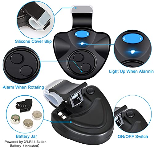 ★【Nuttig om te dragen】 Het alarm voor visserijbits is compact en voortreffelijk, gemakkelijk te dragen en te installeren. Hang hem gewoon aan de stang en wikkel het vissnoer om het bit-haakalarm.